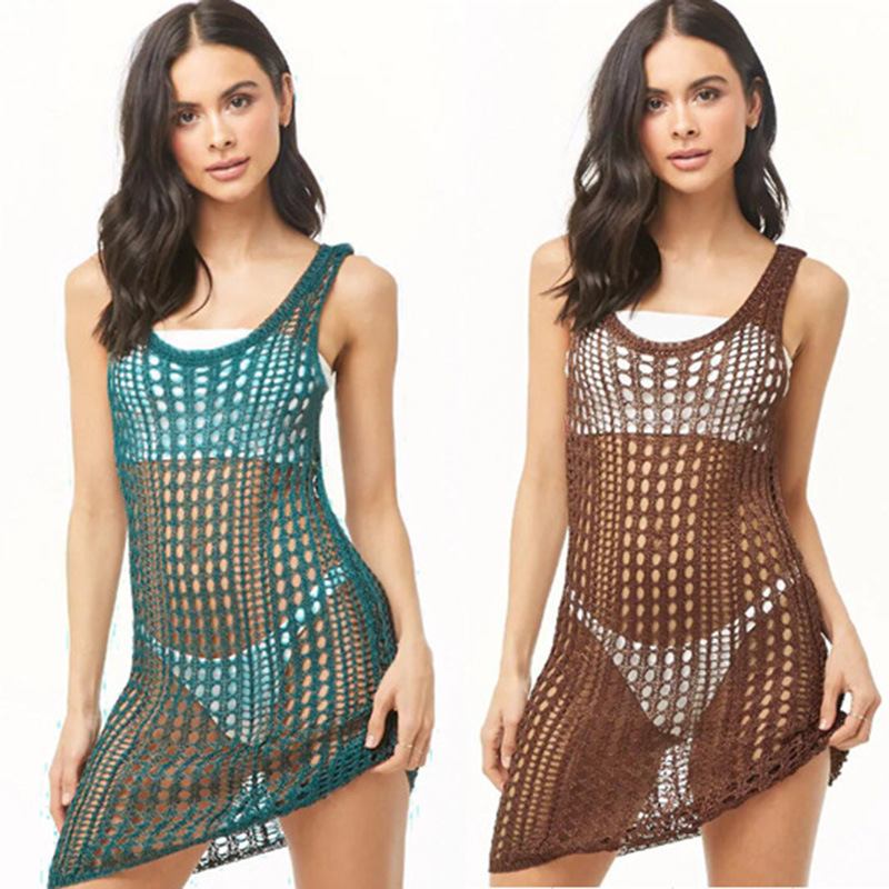 欧米の新型ニットの透かし彫りのベスト式の短いスカートの休暇の温泉のビーチのブラウスの水着のビキニの外で女性を掛けます。