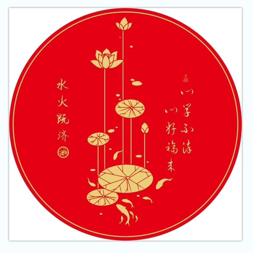 ラウンド水と火の蓮中国風のバスルーム鯉キッチンステッカー蓮自己粘着ステッカー