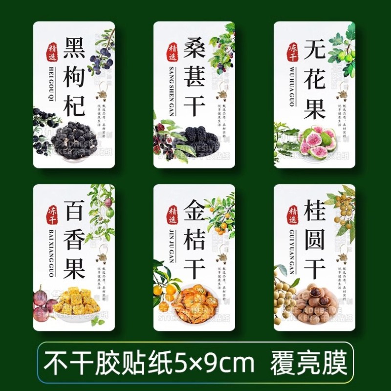 新しい黒クコ、桑の実、乾燥ライス、乾燥金柑、ドライパッションフルーツ、ドライイチジクラベル、フルーツティー、花茶ステッカー