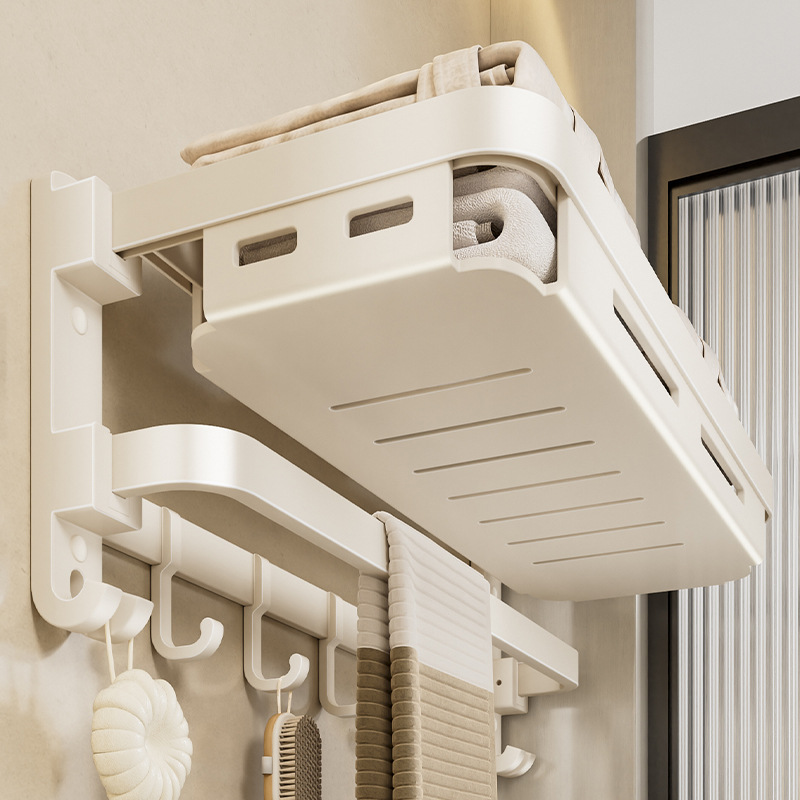 タオルラック 浴室パンチフリータオルラック 一体型ハンガーセット トイレシャワー 浴室棚収納 ミルクホワイト