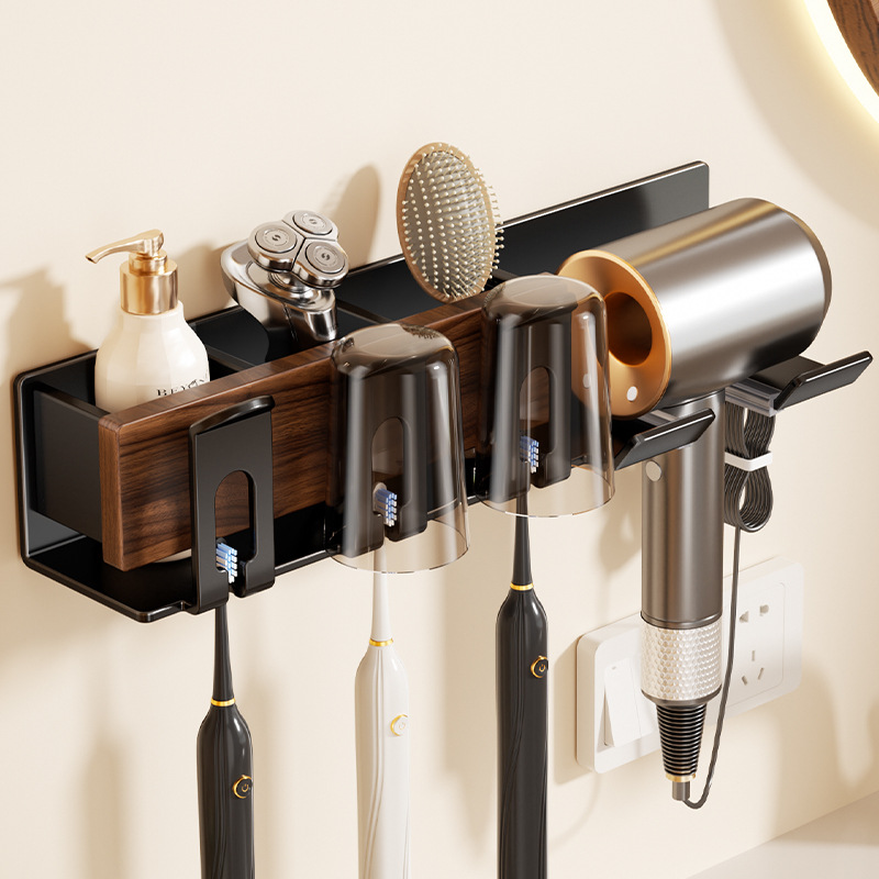 ウォールナット歯ブラシラック収納ラック壁掛けパンチフリーハイエンドバスルーム電動歯ブラシウォッシュカップホルダー