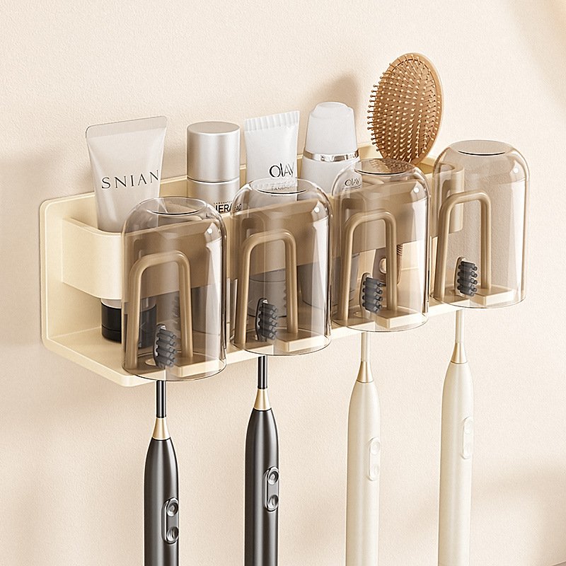 クリーム風歯ブラシホルダー穴なしトイレ壁掛け歯コップうがいカップ収納電動歯ブラシホルダー