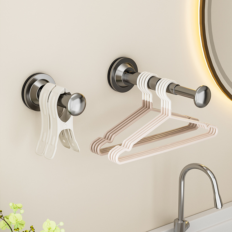 吸盤ハンガー収納神器家庭用ベランダ多機能伸縮無穴伸縮ハンガーポール壁掛け