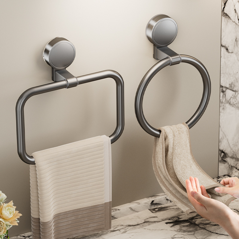 吸盤タオルラック穴なし浴室タオルラックトイレタオルリング洗面台壁掛け円形リング
