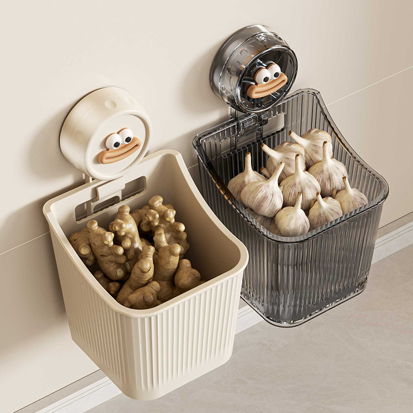 玉ねぎ、生姜、ニンニク収納ボックス、吸盤、キッチン収納バスケット、壁掛けパンチフリー収納ラック、生姜ニンニク小型ハンギングバスケットアーティファクト