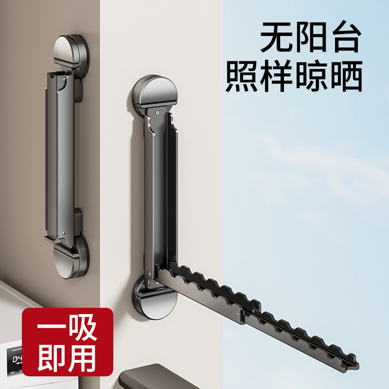 穴を開けないハンガー干しラック家庭用吸盤折りたたみ物干し神器伸縮可能バルコニートイレ掛け干し棒