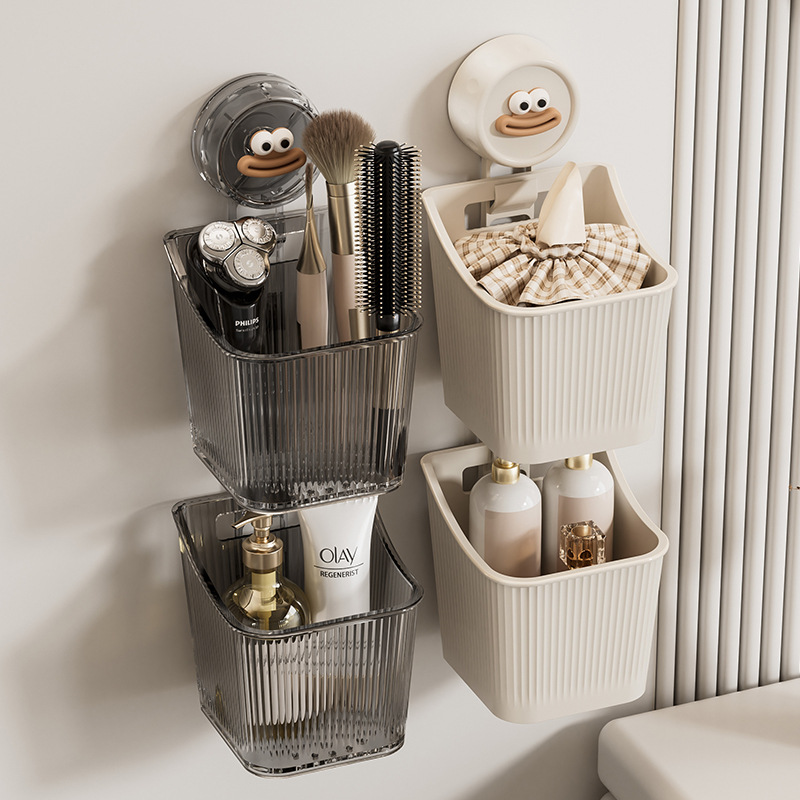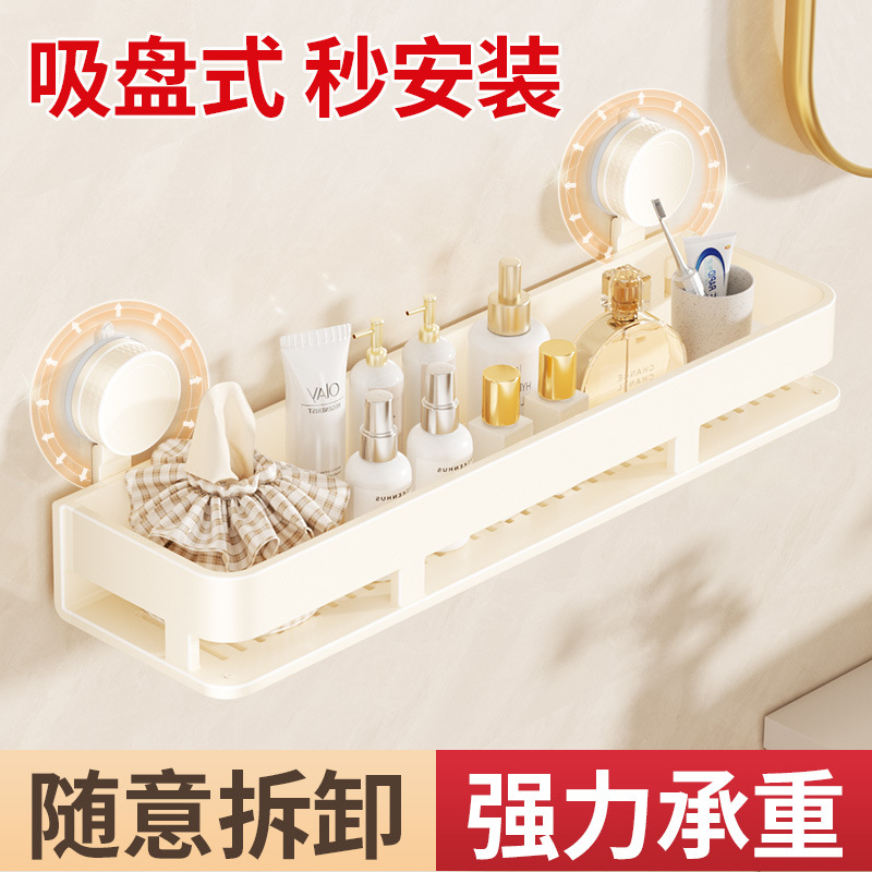 乳白色の吸盤収納ラック、パンチフリーのバスルーム洗面台、化粧品トイレ壁掛け壁収納ラック