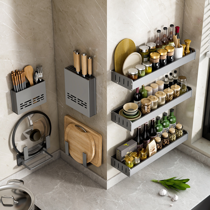 銃灰厨房物置棚穴なし壁掛け調味料用品大全刀棚掛け多機能収納棚