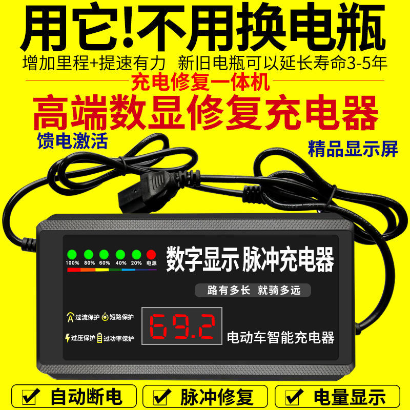 アクティベートバッテリー デジタルディスプレイ自動オフバッテリー車の充電器 48V60V20AH 二輪および三輪電気自動車ユニバーサル