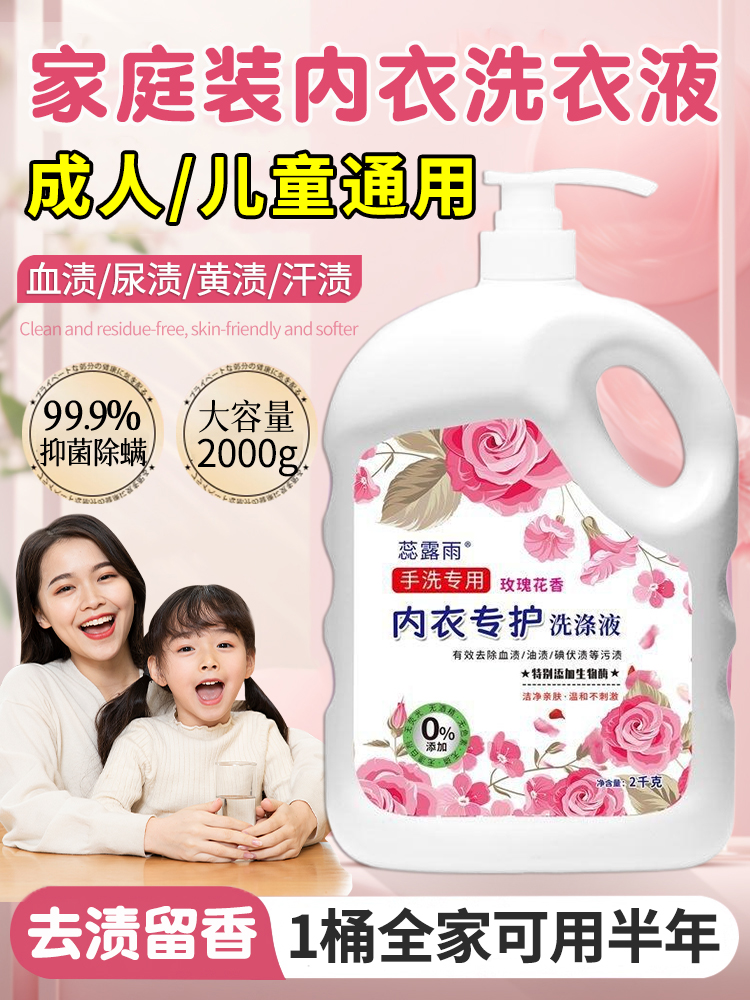 大人と子供用の下着と下着用の洗濯洗剤の大きなボトル、子供と女性用のユニバーサル、旗艦店