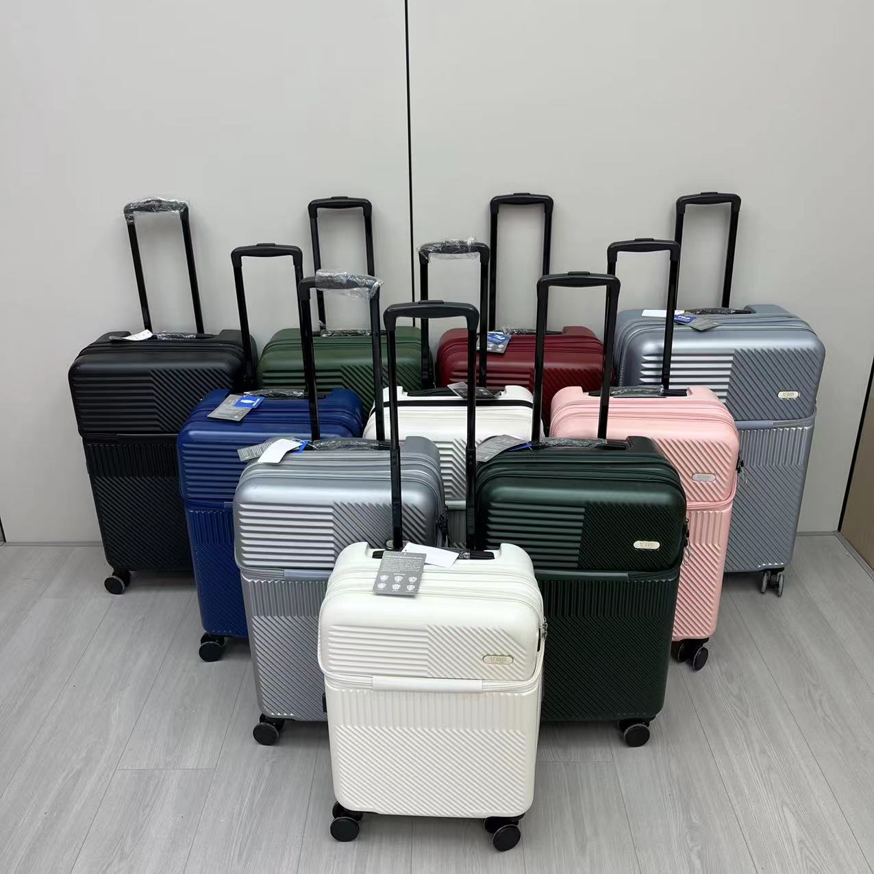 貿易工場尾品価格不良クリアランスPCフロントオープンジッパーケース24inchキャビンスーツケースユニバーサルホイール男女兼用