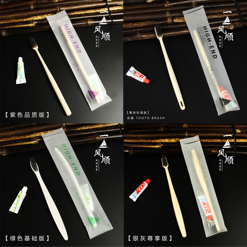 ホテルの使い捨て洗面用品六点セットの民宿袋に同一タイプの包装4段の柔らかい毛の歯ブラシがあります。