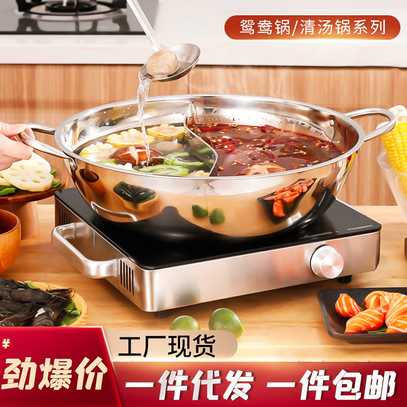 厚いステンレスのオモリの鍋の大容量の電磁ストーブの鍋の底の両耳は蓋の家庭用の商用の鍋の鉢を持って代行します。