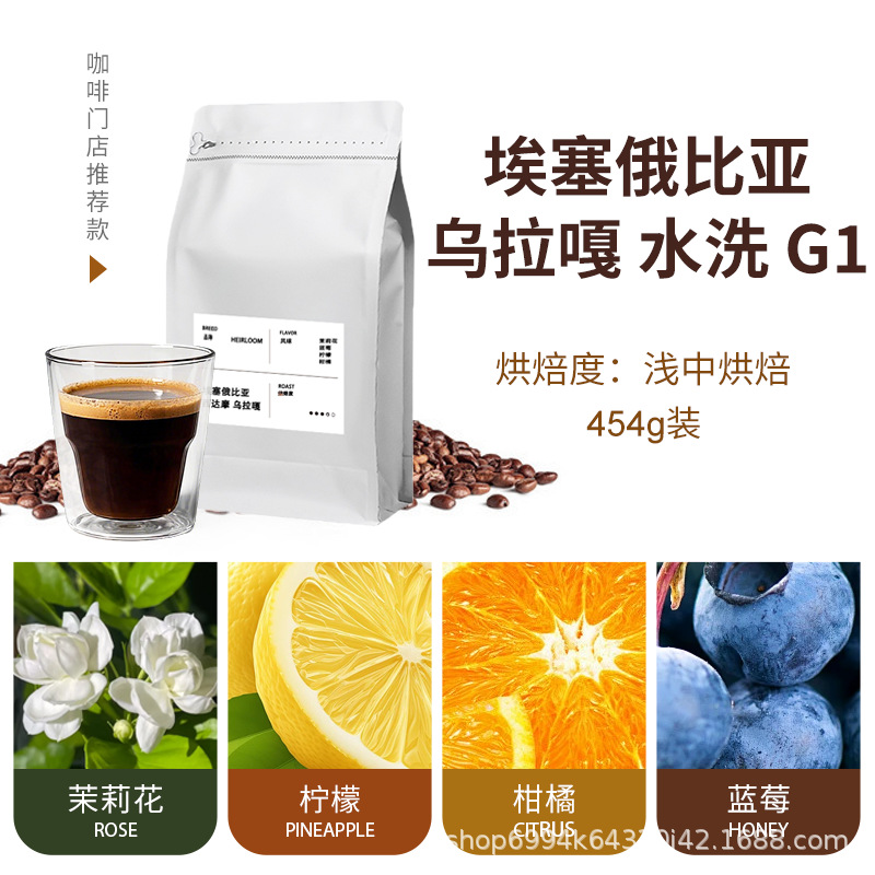 エチオピア果丁水洗いアメリカモカ壺手沖冷中浅焙煎コーヒー豆商用454g