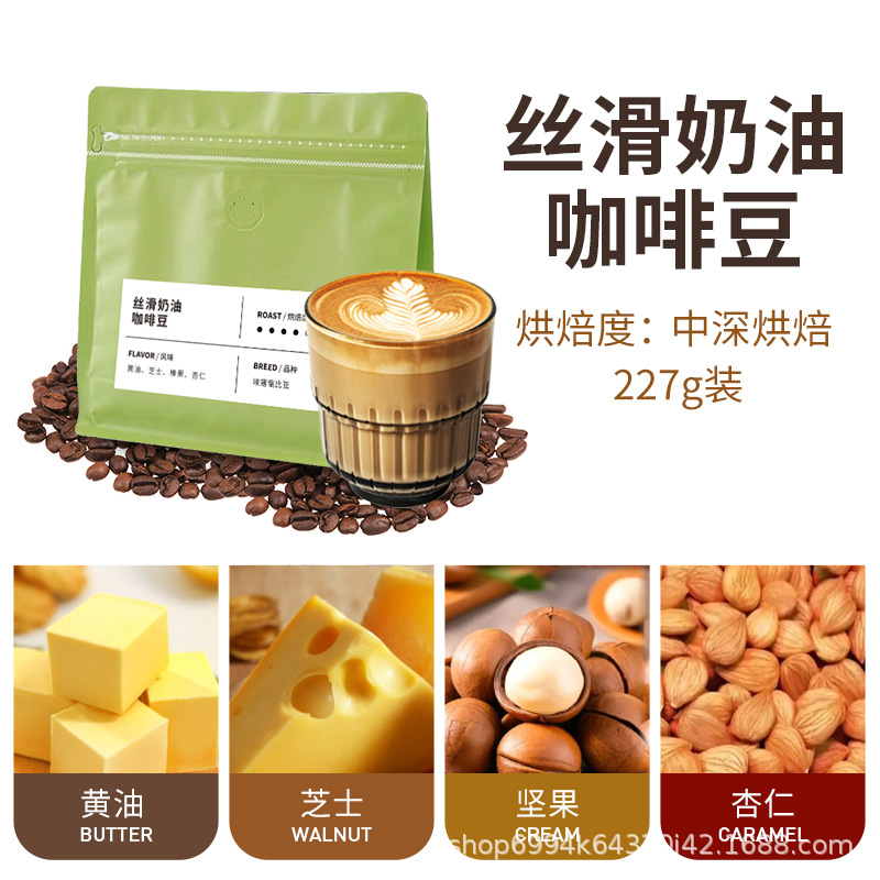 シルククリームバターのエスプレッソ配合中深焙煎コーヒー豆カフェ卸売りはアメリカ式ラテ227gを提供しています。