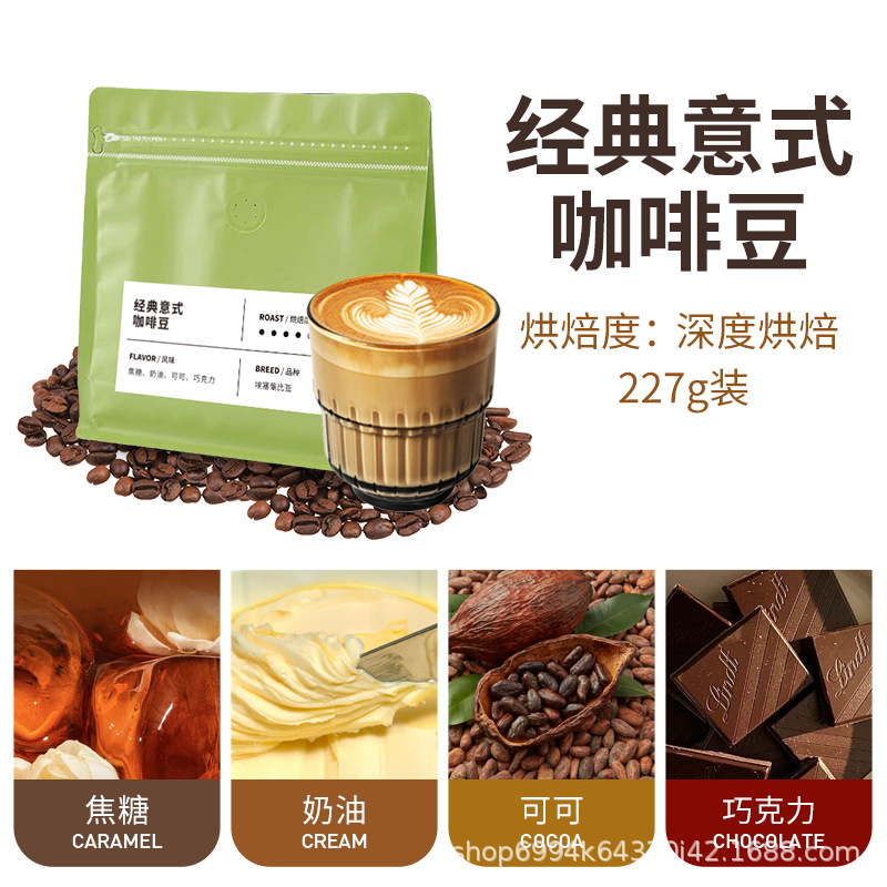 黒巧の経典のイタリア式の組み合わせの中で深い焙煎のコーヒー豆の喫茶店の卸売りはアメリカ式のラテの227gを供えます。