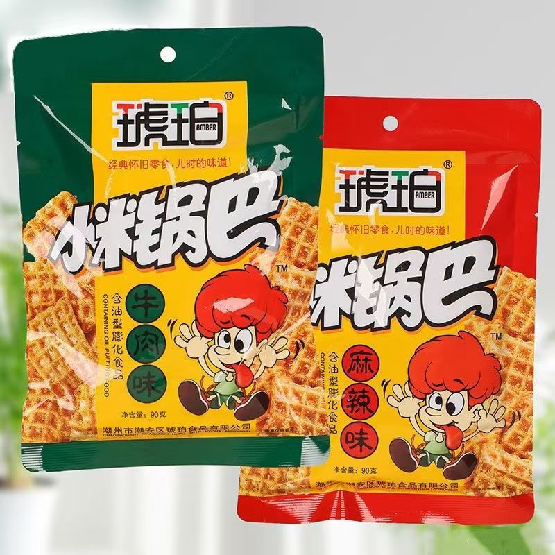 琥珀牛肉麻辣味90g米鍋巴8090後レトロな軽食レジャー食品袋入り