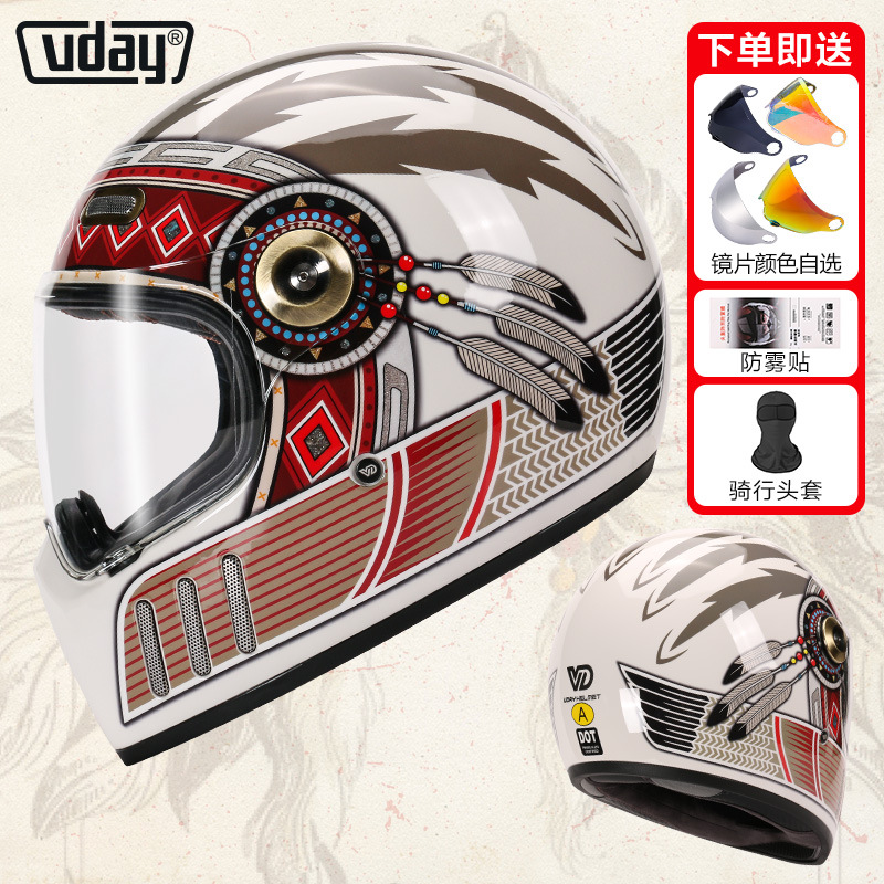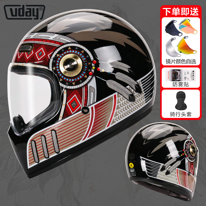VDAY オートバイヘルメット 男女兼用 四季対応 曇り止め オートバイ VDAY 安全 レトロ フルフェイスヘルメット クルージング安全認証