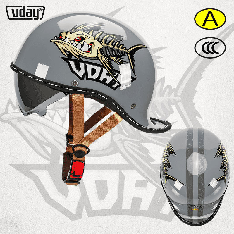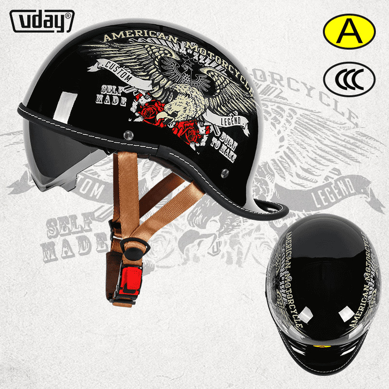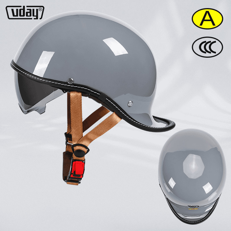 VDAY復古ヘルメット瓢箪ヘルメット大サイズ反り半ヘルメット厚さ減震電動バイク機関車男女夏半ヘルメット