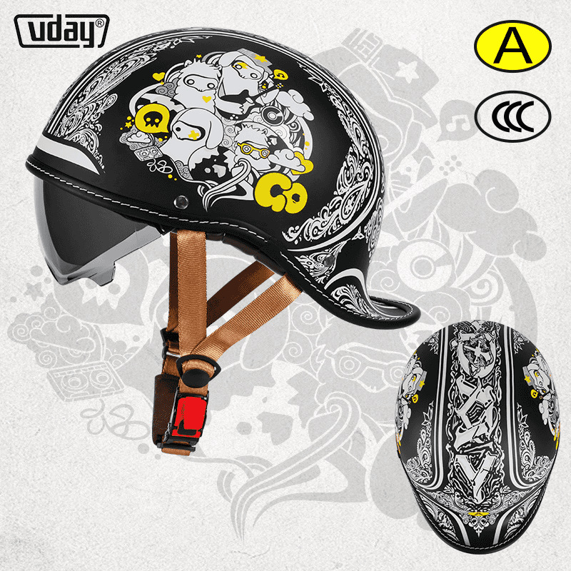 威帝レトロ機関車安全ヘルメットファッション個性落書き半ヘルメットクルーズバイク機関車四季男女通用