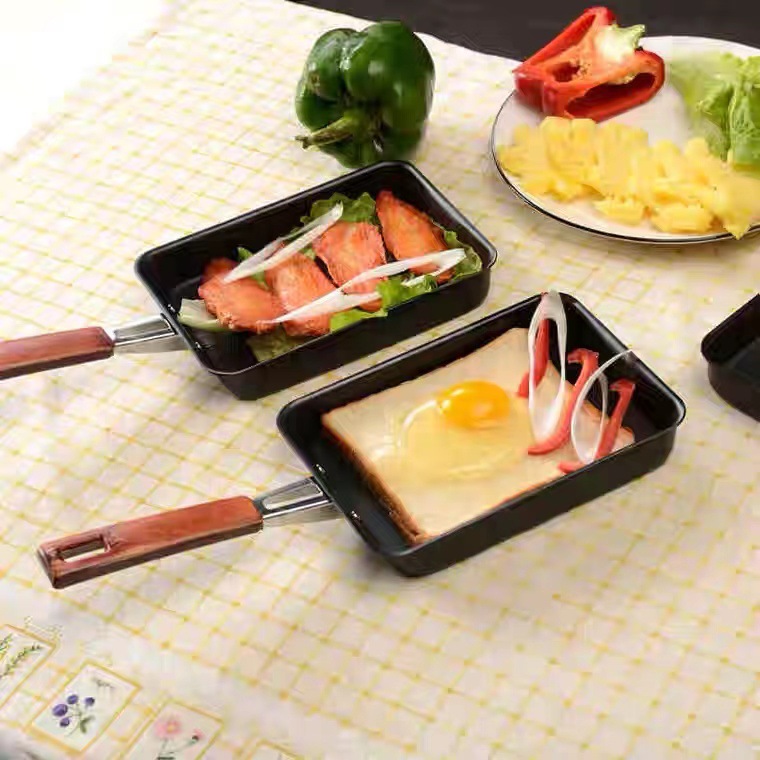 日本輸入玉子焼き目玉焼きお弁当鉄製木柄長方形フライパンステーキ鉄フライパン
