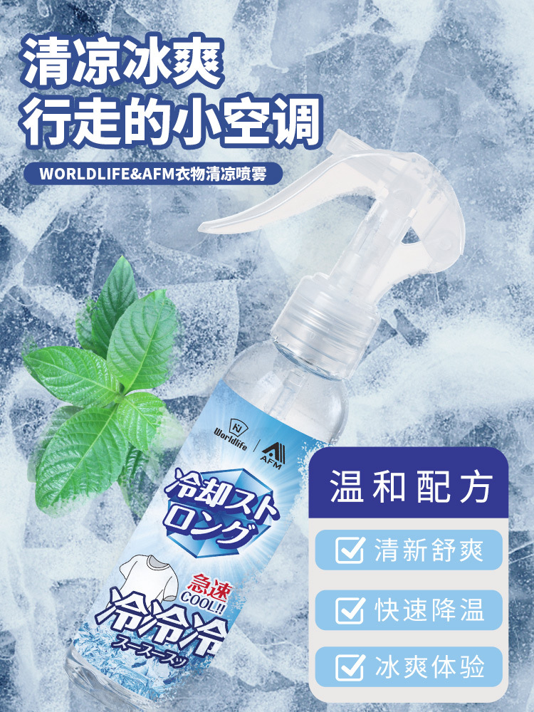 日本world life清涼スプレー降温剤夏屋外避暑暑学生軍事訓練衣類スプレー