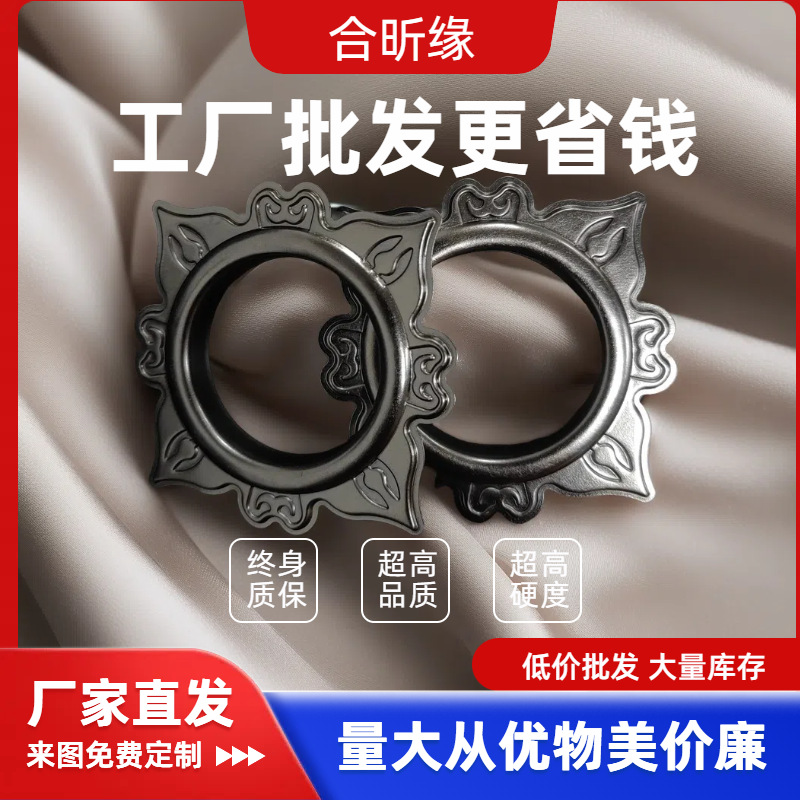 メーカー直供電気めっきカーテンリング銃カーテンロッド黒気眼鶏眼花形内径40mmカーテンバックル