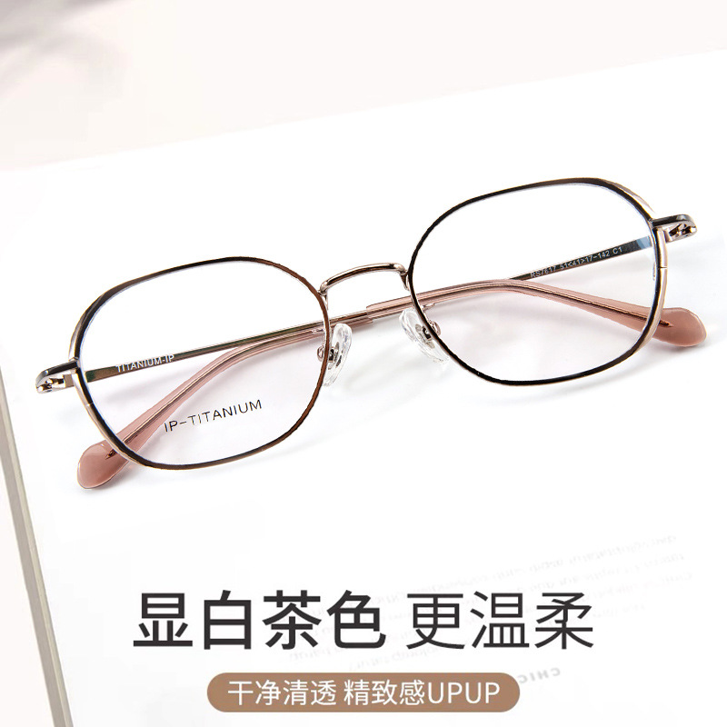 新型チタンフレーム小楕円小顔高さ数女性眼鏡フレーム気質ホワイトカラー近視フレーム女神モデル