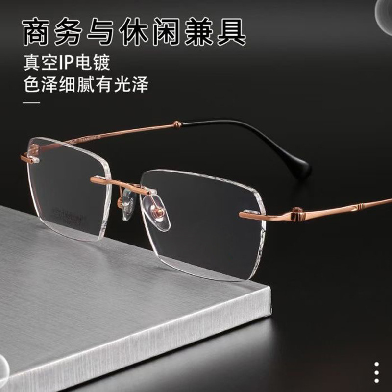 純bチタン超軽量フレームレス眼鏡フレーム男女型近視老眼鏡フレームダイヤモンドカットエッジが歪むことができる
