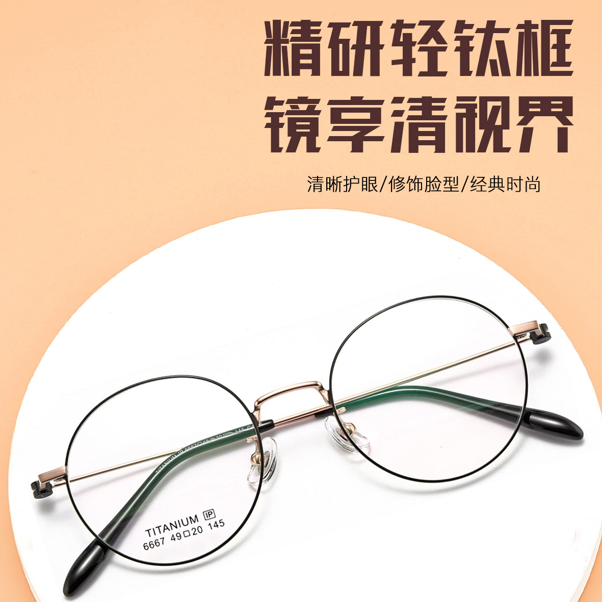 純チタンハイエンドレトロ丸枠メガネフレームファッション超軽量超細い高さ数メガネ男女青少年韓国版