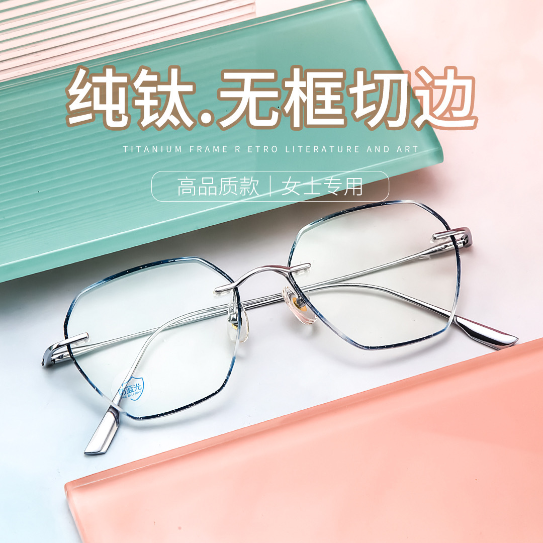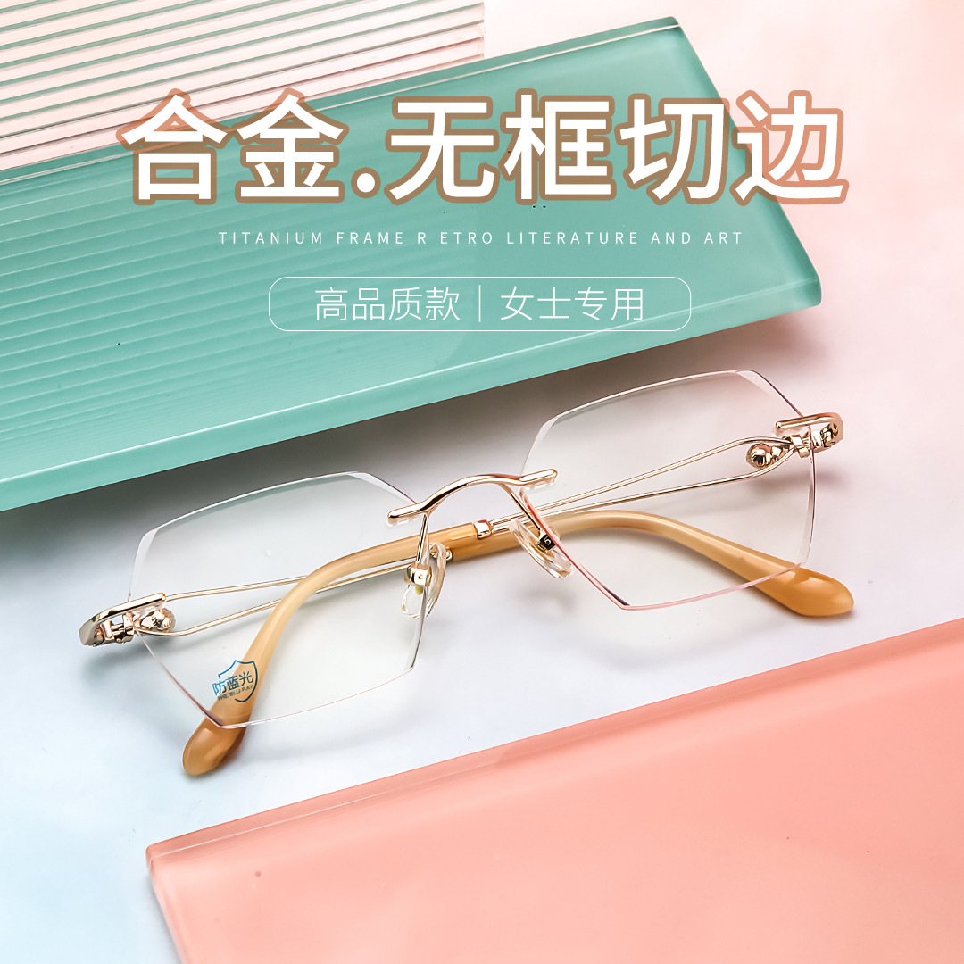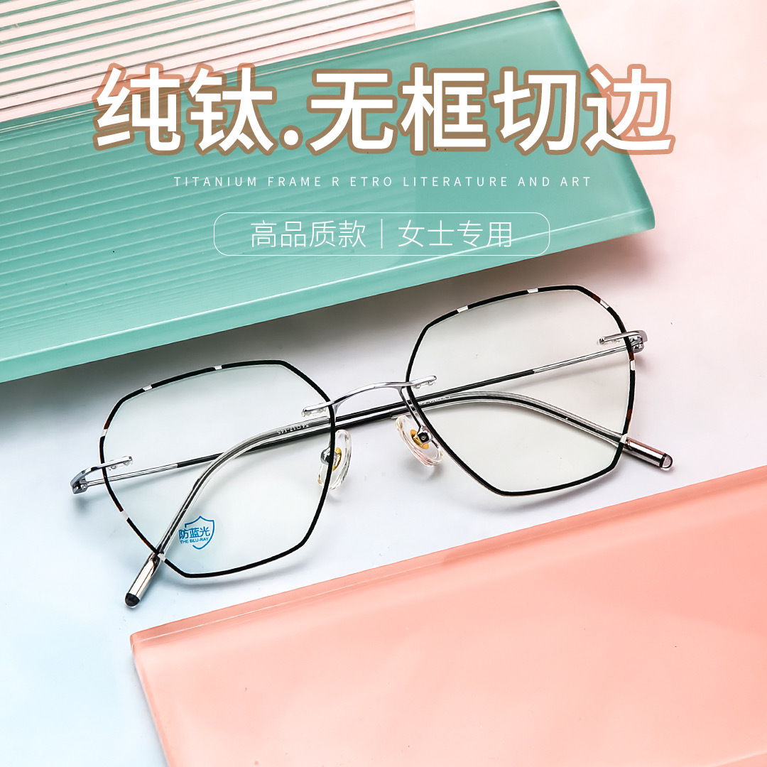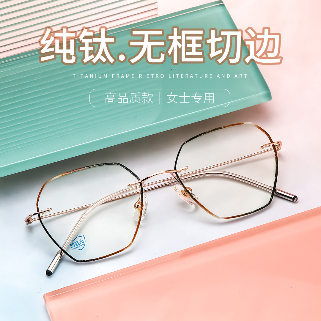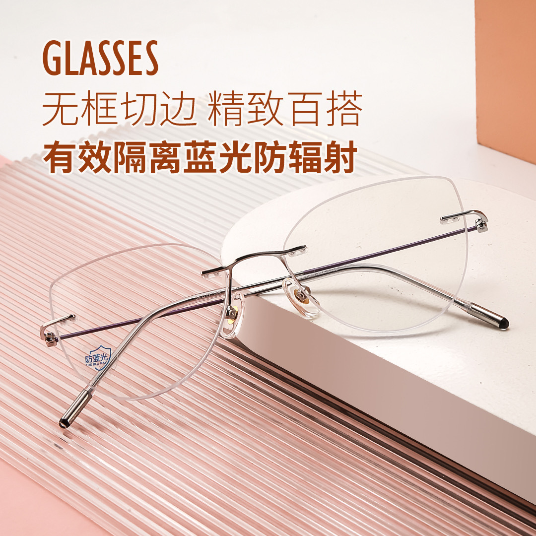 純チタン男女簡易ビジネス精致近視老花高さ数メガネ無枠ダイヤモンドエッジカットメガネ