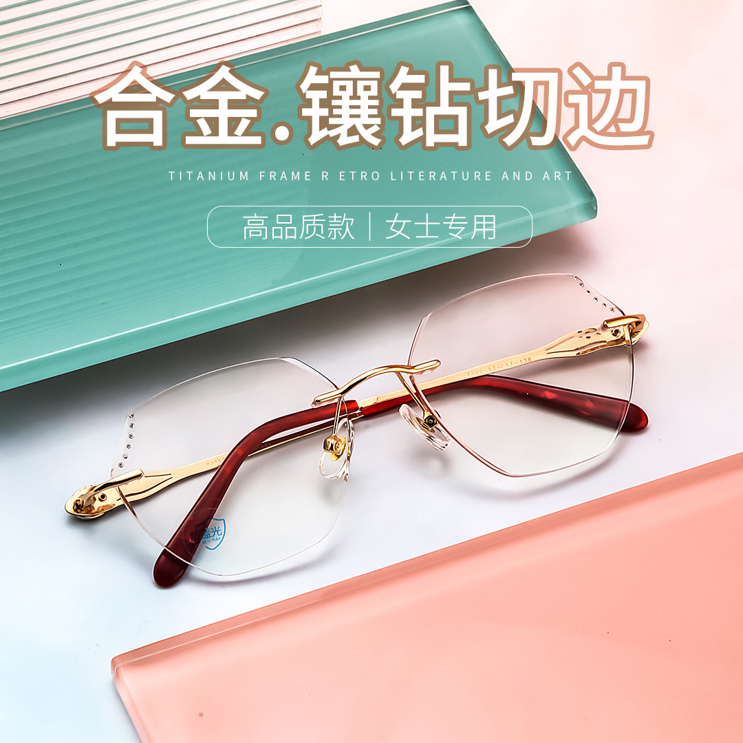 純チタン男女簡易ビジネス精致近視老花高さ数メガネ無枠ダイヤモンドエッジ個性
