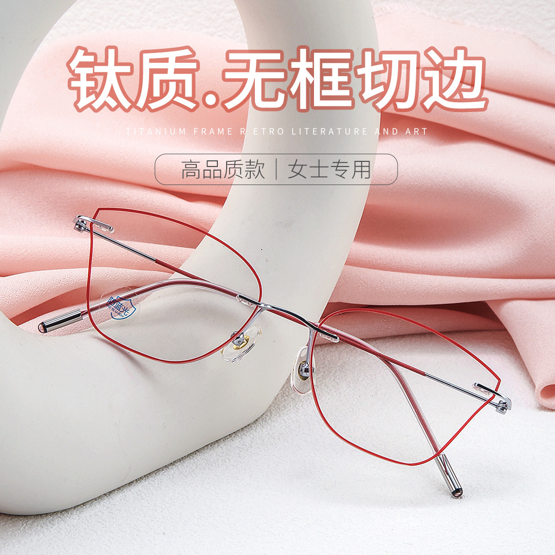 純チタン男女簡易ビジネス精致近視老花超軽眼鏡無枠セクシー猫眼眼鏡