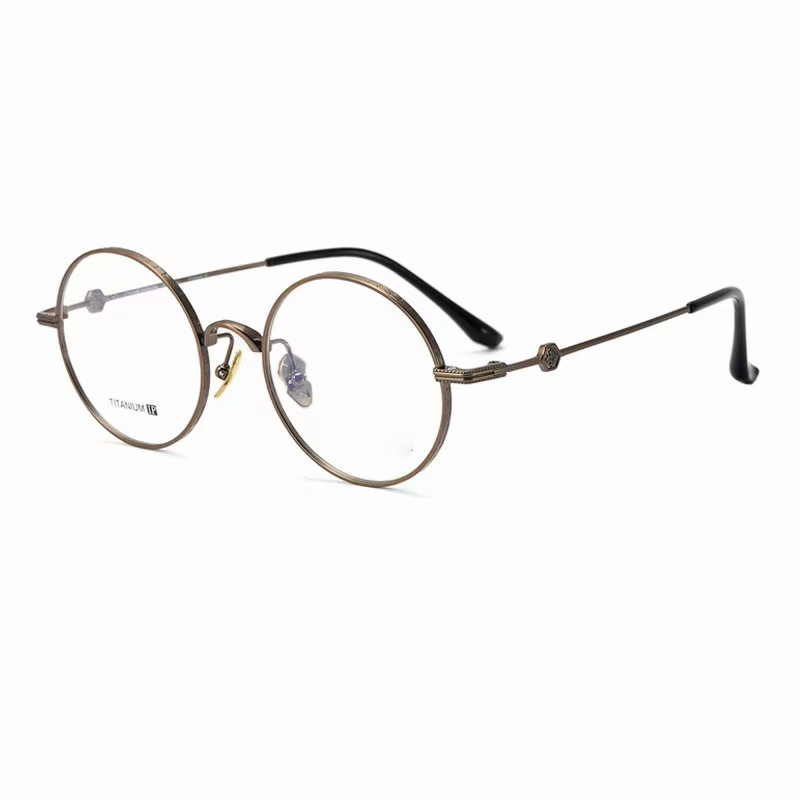 高品質CH5305純チタンレトロ真円超軽量眼鏡フレームファッション個性男女和風高さ数