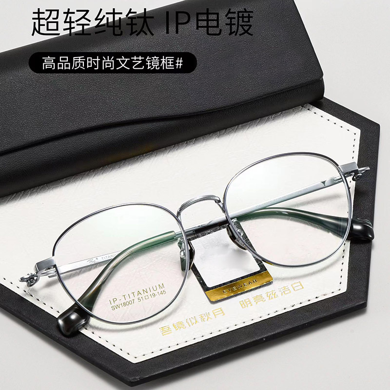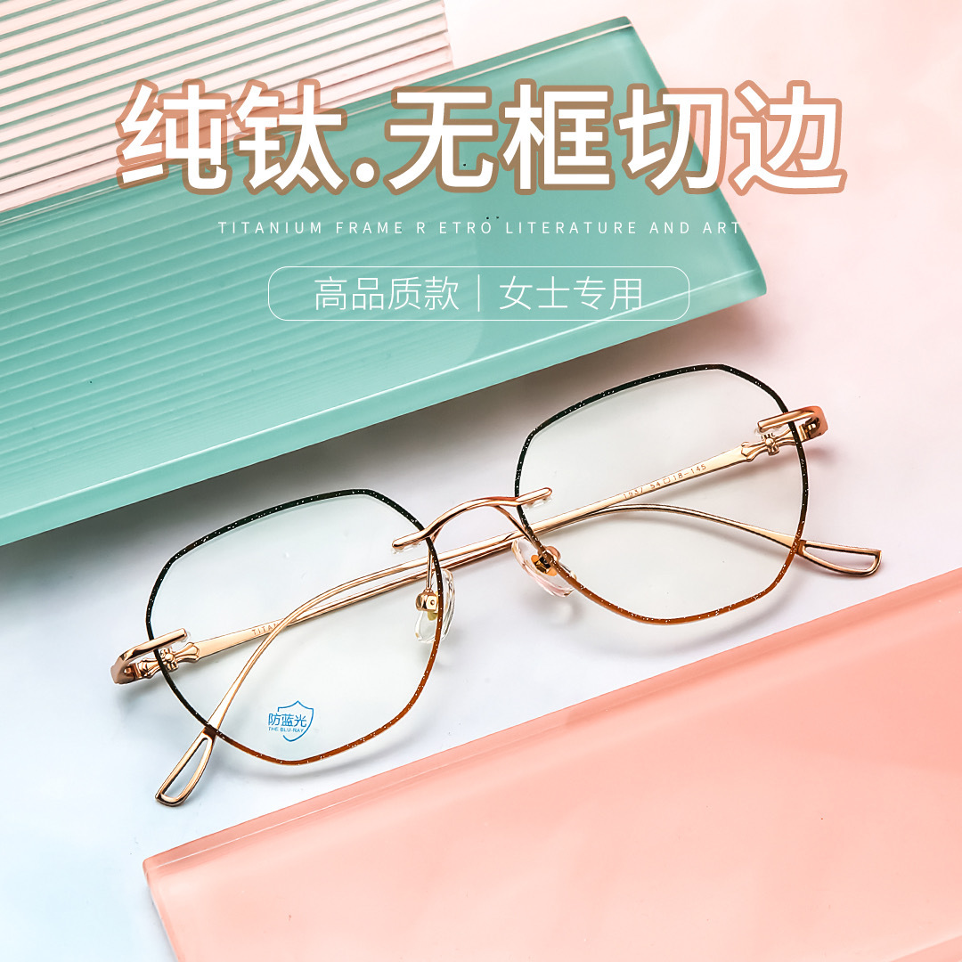 新型純チタンビジネス全枠女性眼鏡フレーム気質ホワイトカラー高さ数近視老花品質フレーム