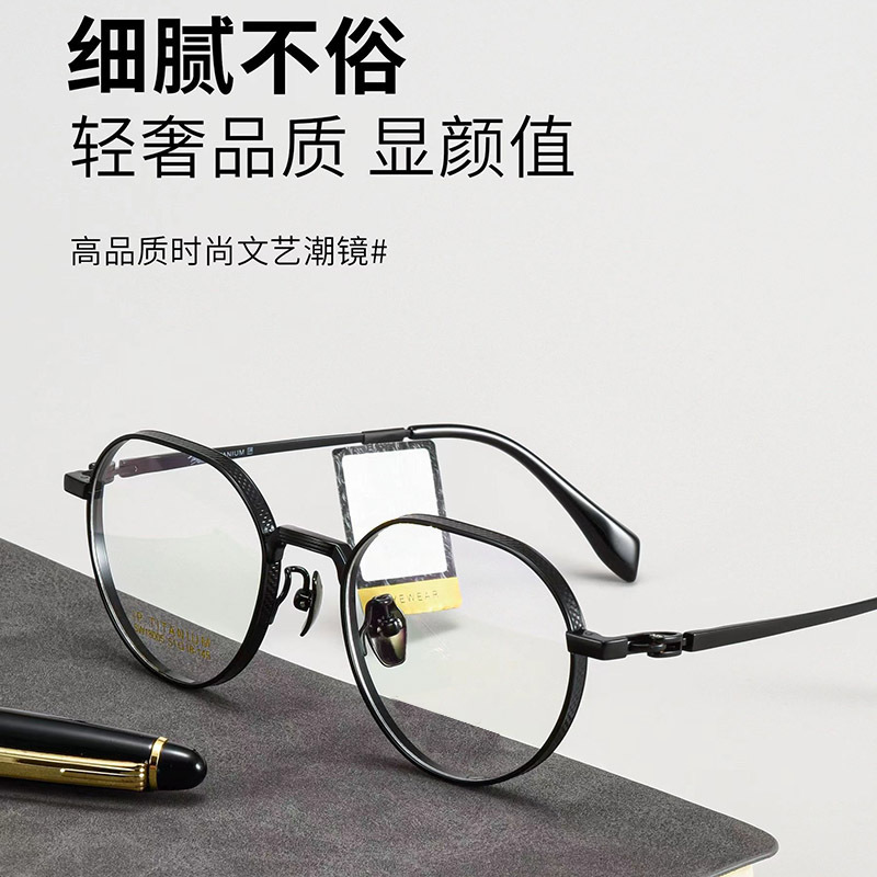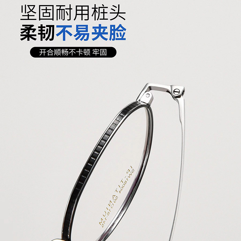 純チタン高品質ビジネス男性眉脚フレーム眼鏡フレームファッション個性超軽量近視老眼鏡フレーム安定