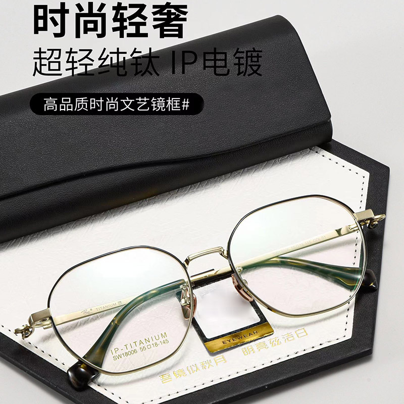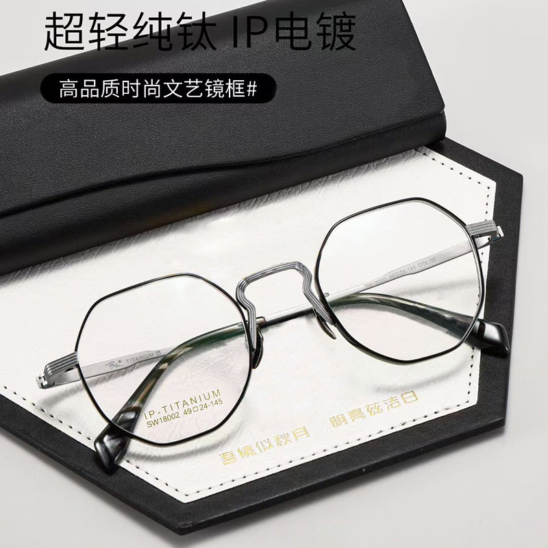 高級純チタンチタン板メガネフレーム超軽量韓国版レトロ多角形個性メガネ男女同モデルファッションフレーム