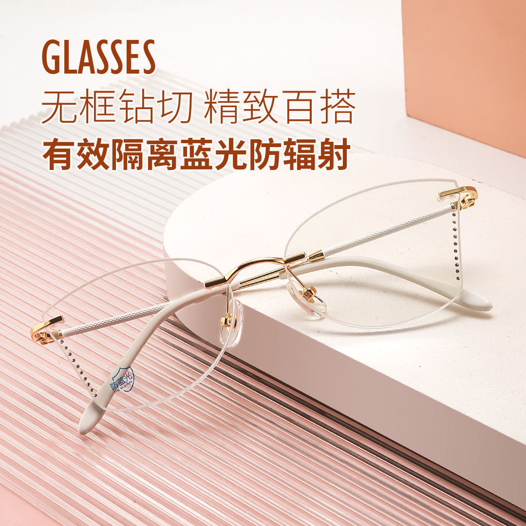 新品純チタン眼鏡フレームレス近視老花気質クラシックレディース人魚姫ダイヤモンドエッジカットハイエンドパール