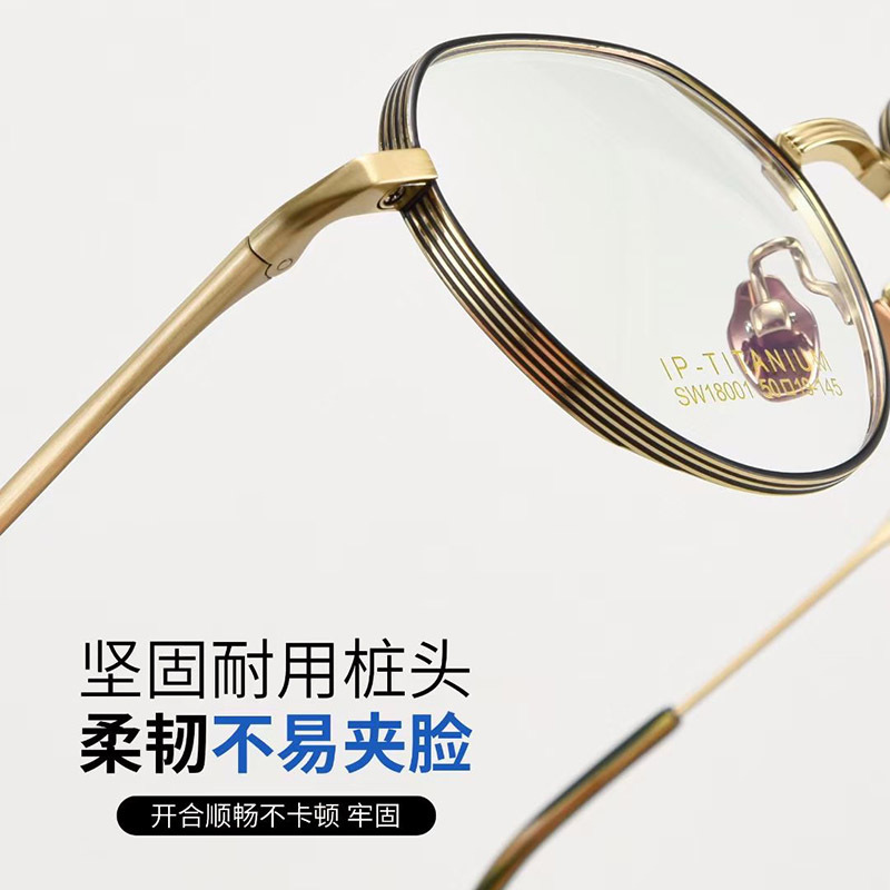 高品質純チタンチタン板メガネフレーム超軽量厚手太枠高さ数メガネ韓国版レトロ多角形