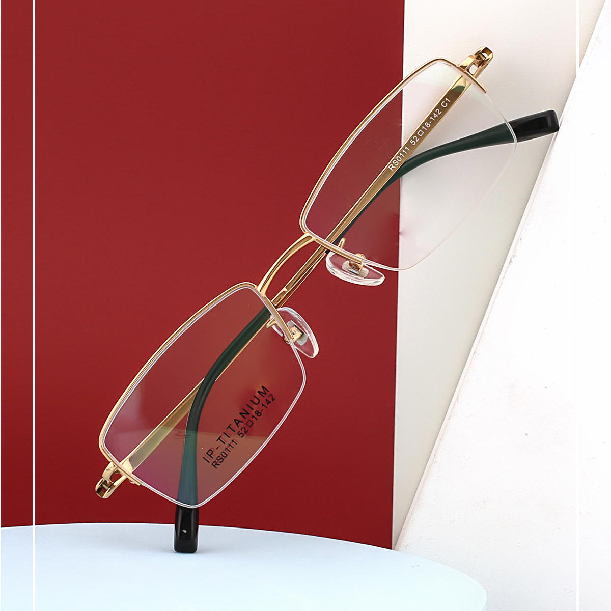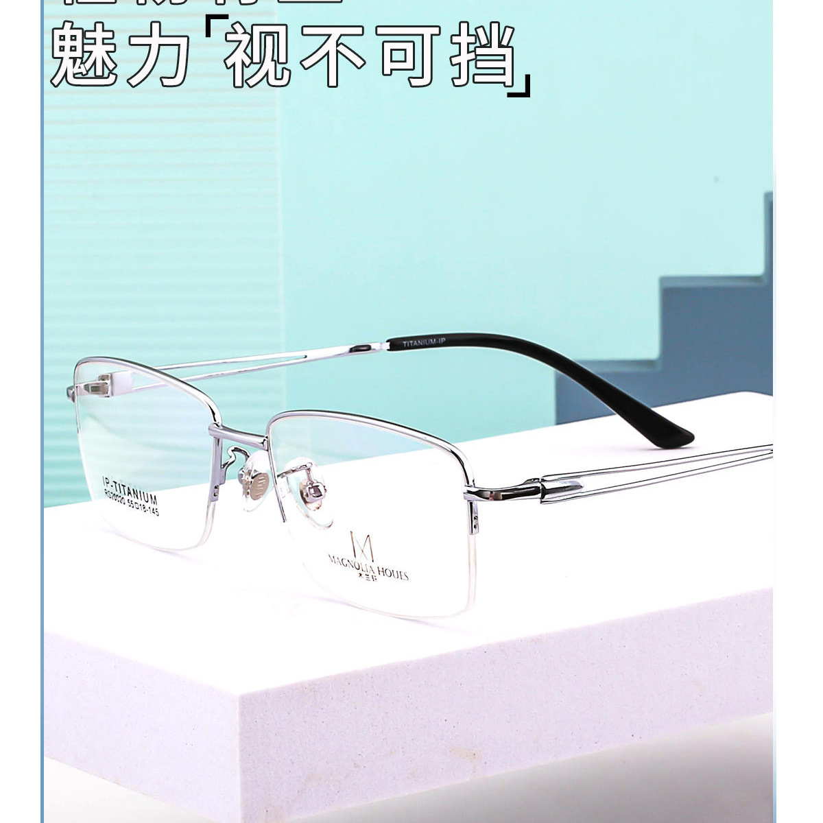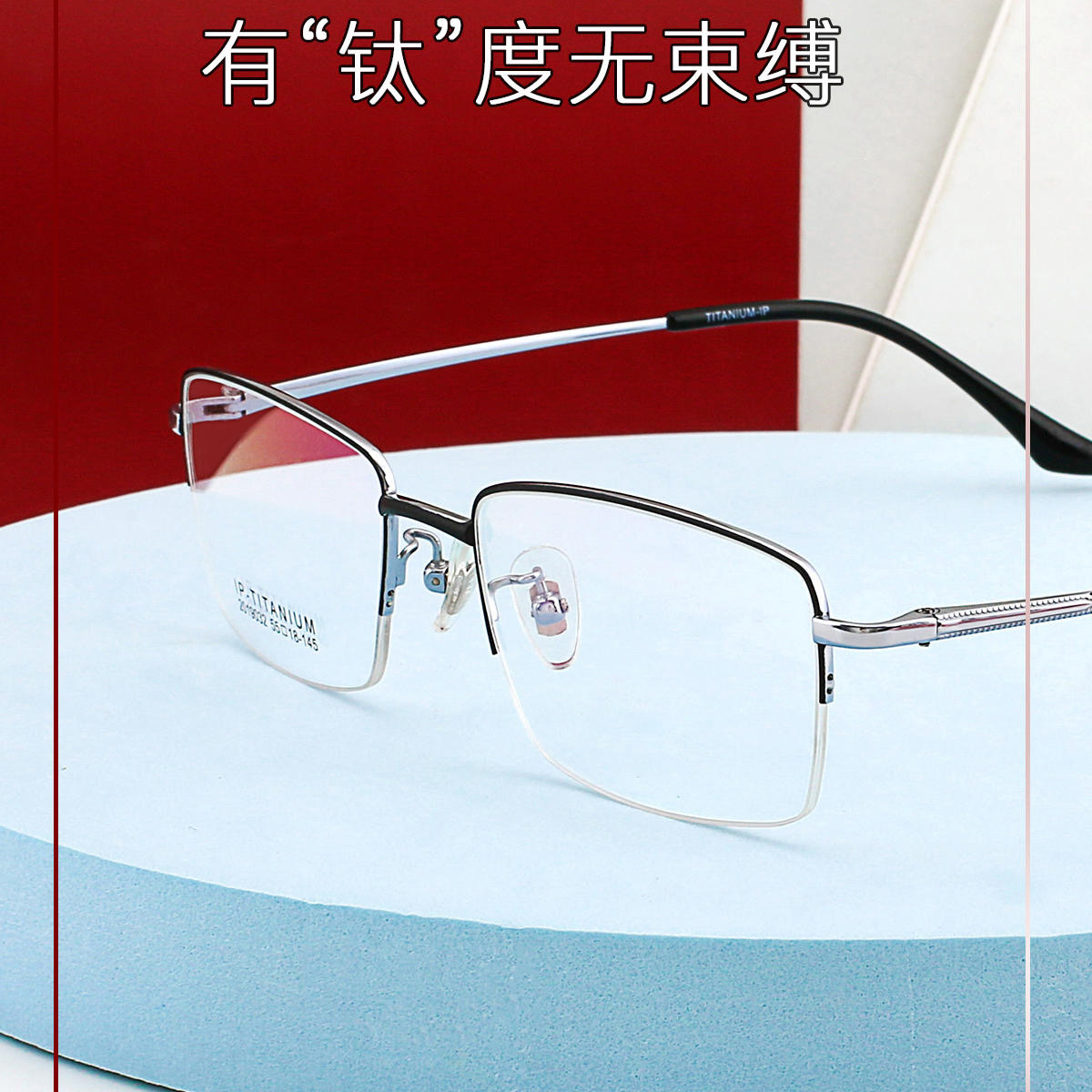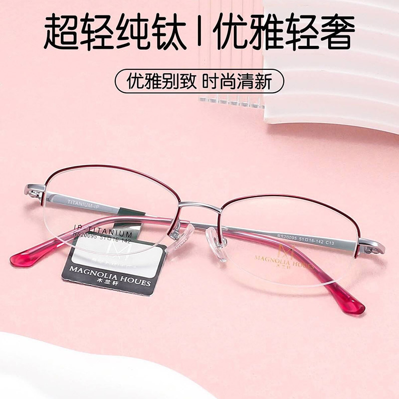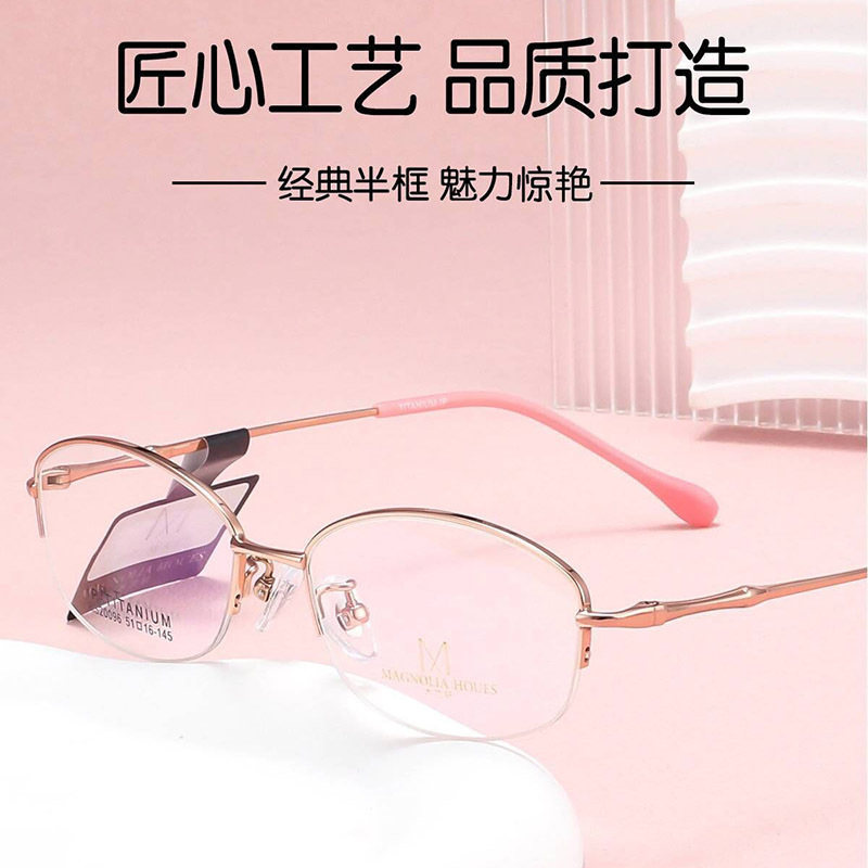 新型純チタンビジネス半枠女性メガネフレーム気質ホワイトカラー高さ数近視老花結実フレーム