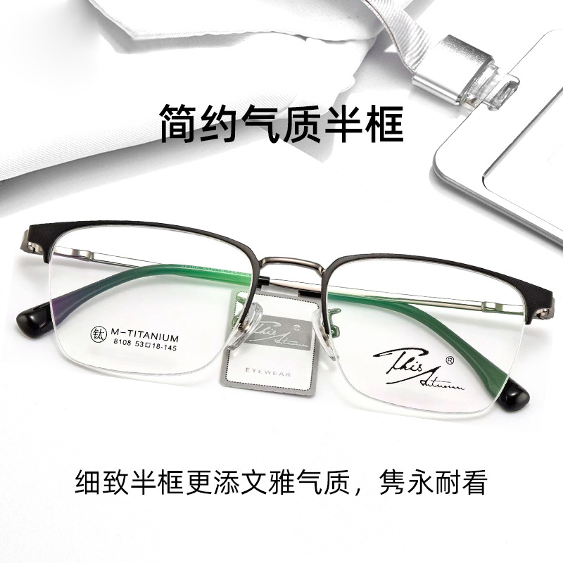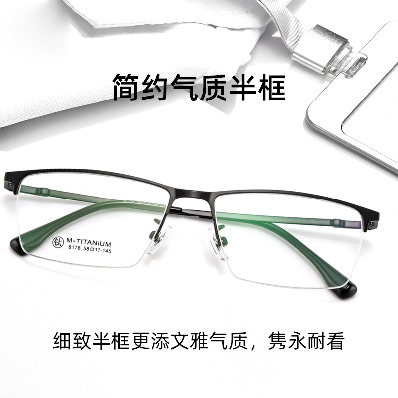 純チタンシンプルで洗練された顔を挟まない超軽量半フレーム眼鏡フレームビジネス男性近視老眼鏡フレームファッション