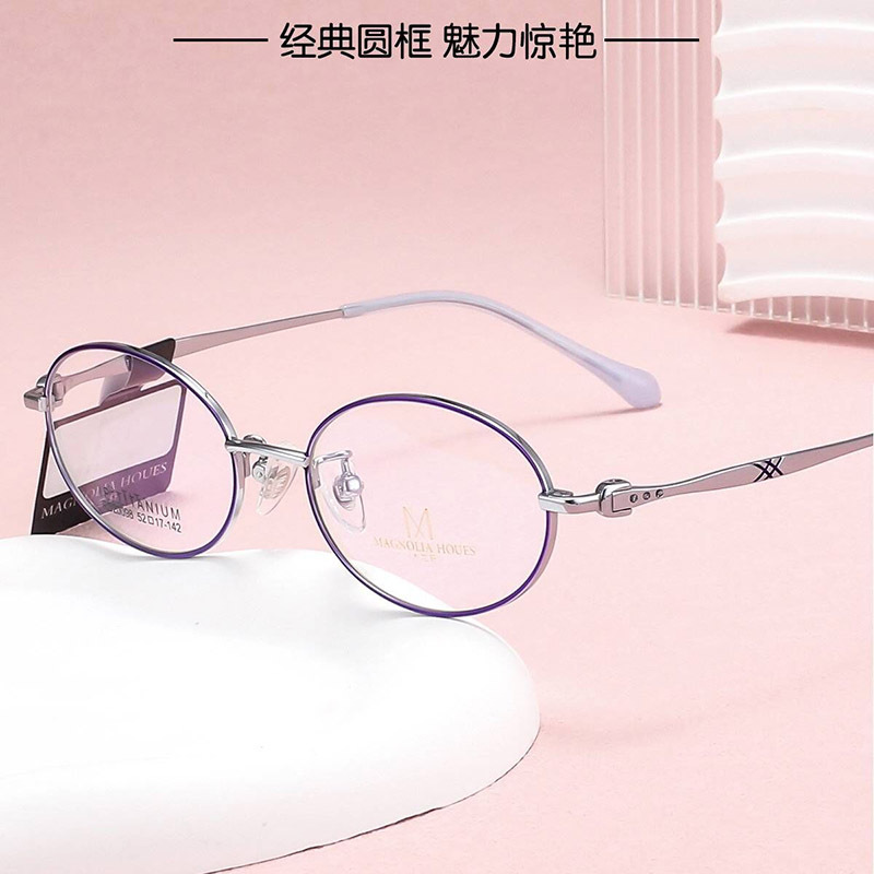 新型シンプルで丈夫な純チタンビジネス半枠女性メガネフレーム気質ホワイトカラー高さ数近視老眼鏡