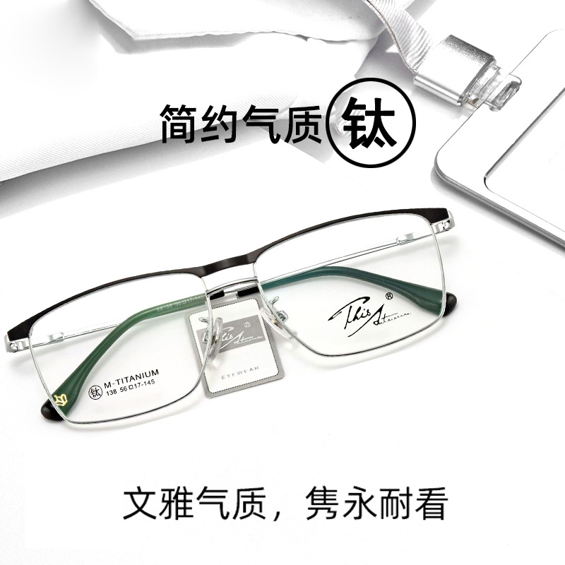 高級純チタン眼鏡フレーム男性近視老花シンプルで寛大な眼鏡フレームファッション半フレームの大きなフレームの細い脚