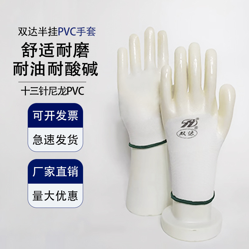 双達半掛pvc手袋十三針ナイロンpvc半浸耐酸アルカリ滑り止め耐摩耗性労働保護手袋卸売り