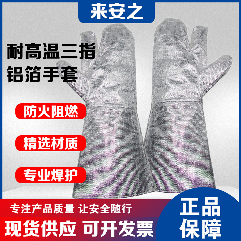 耐高温三本指硬質アルミ箔手袋延長38cm防火手袋難燃性断熱溶接工業治練手袋