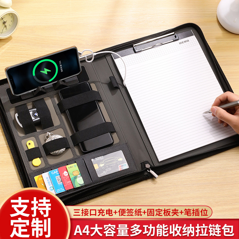 クロスボーダー充電a4ファイルカスタムモバイル電源ビジネスマネージャークリップ卸売りチャック式収納書類クリップ