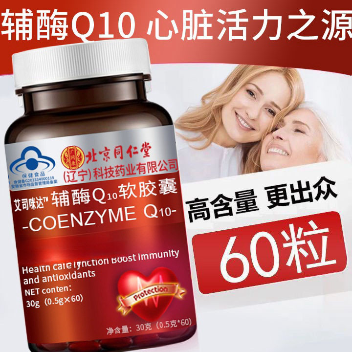 北京同仁堂康梵禄補酵素q10 60粒抗酸化q10ソフトカプセルブルーキャップ