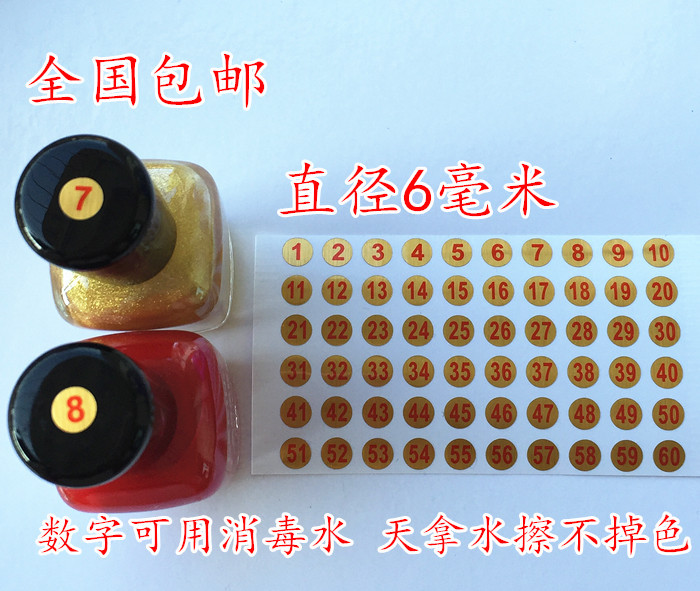 6ミリメートル金1-60色プレート数字番号マニキュアボトル番号記号ステッカー120ラベル180