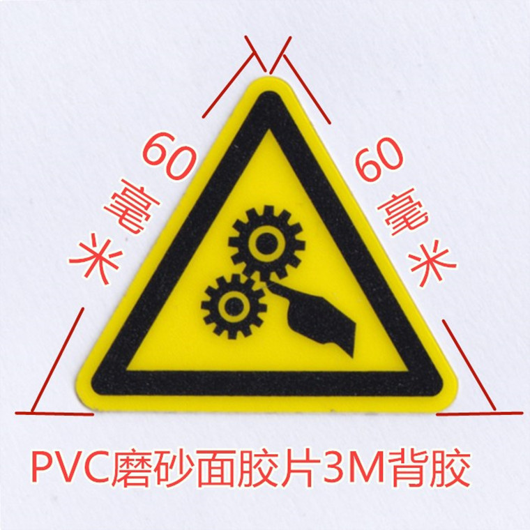 60ミリメートル気をつけて機械的な傷のマーク砂磨きシールに気をつけて手を挟んで歯車機器の安全警告シールを傷つける