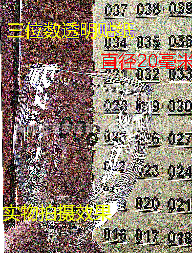 1-100透明直径20mmシールボトル番号デジタルグラス学校会社水杯コードシール